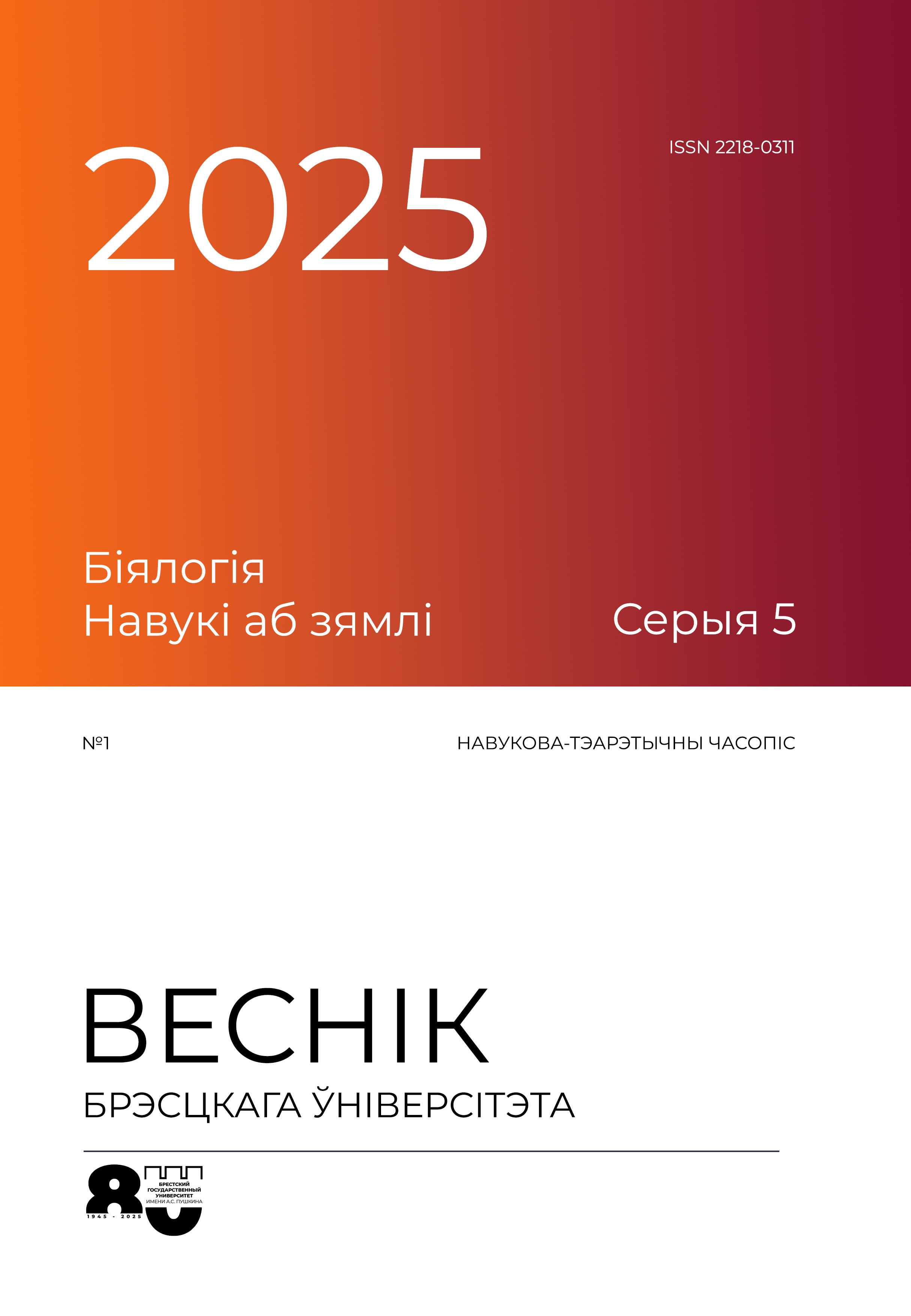 № 1 (2025): Веснік Брэсцкага ўніверсітэта. Серыя 5. Біялогія. Навукі аб зямлі